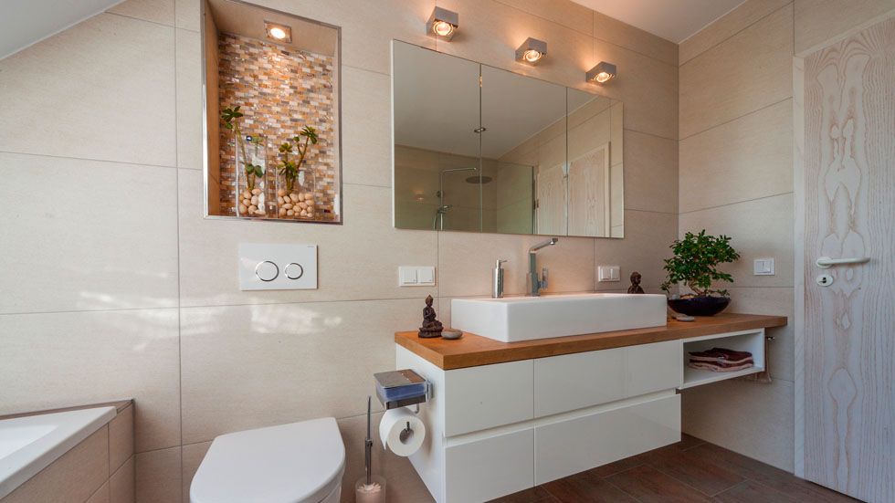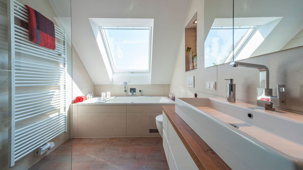 Bad in einer Eigentumswohnung im Dachgeschoß eines Mehrfamilienhauses
