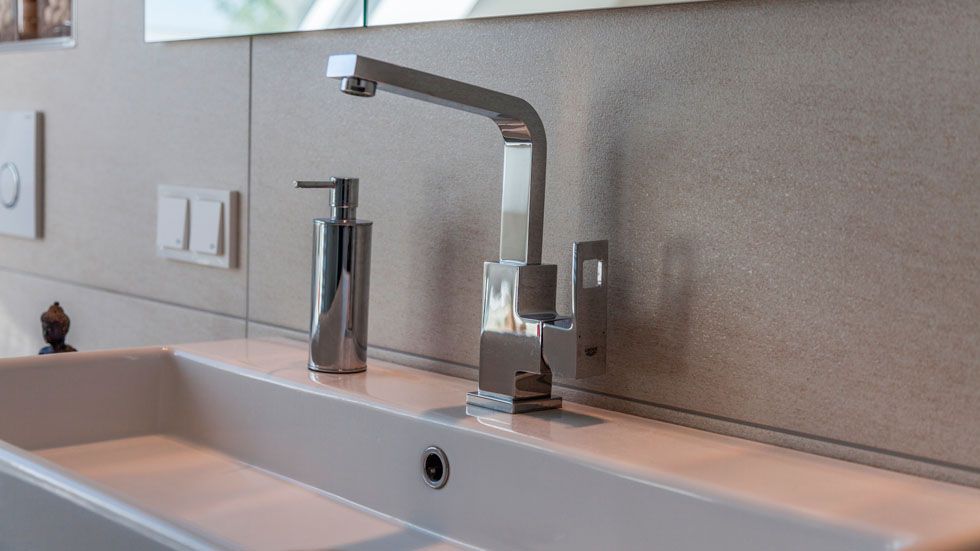 - Waschtischkombination mit Aufsatzbecken in gradlinigem Design