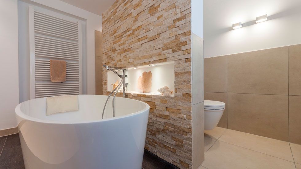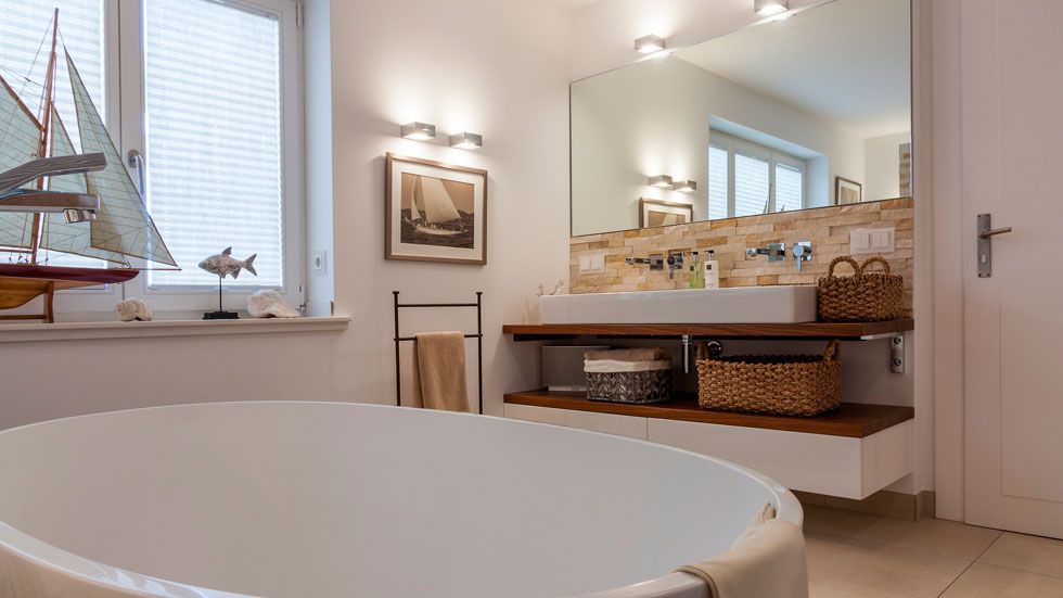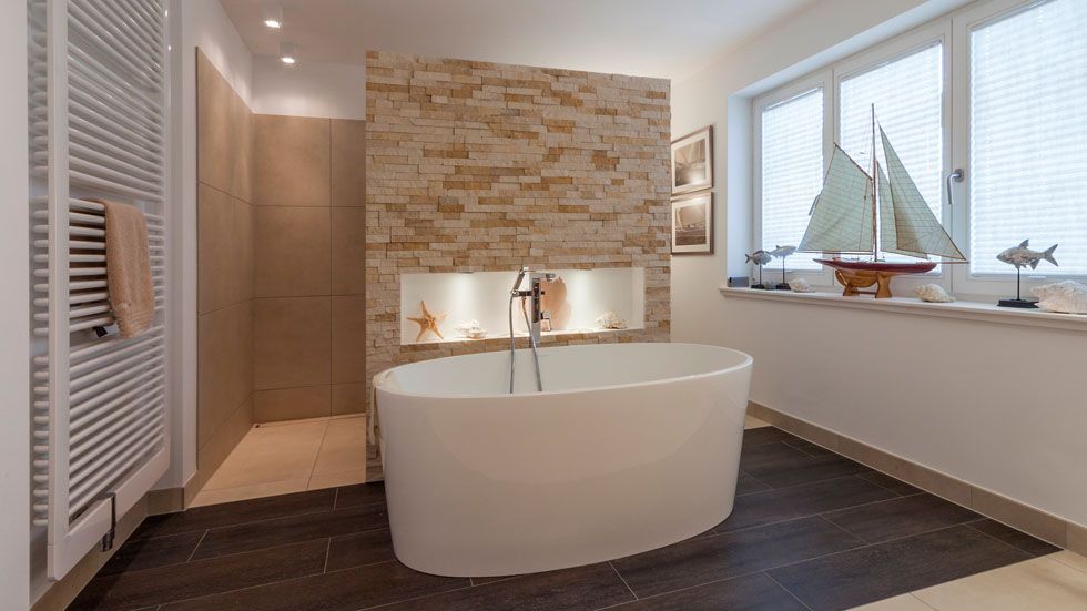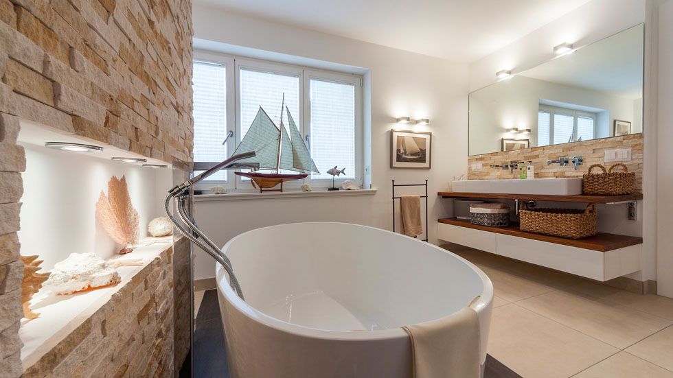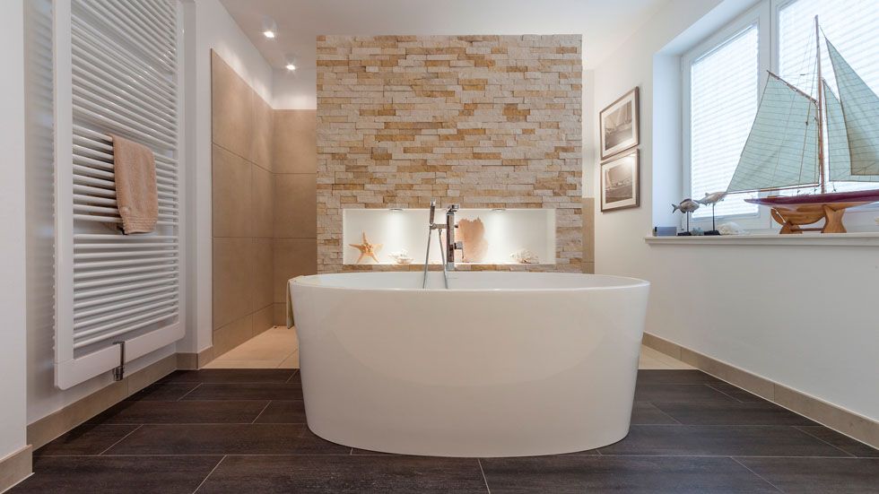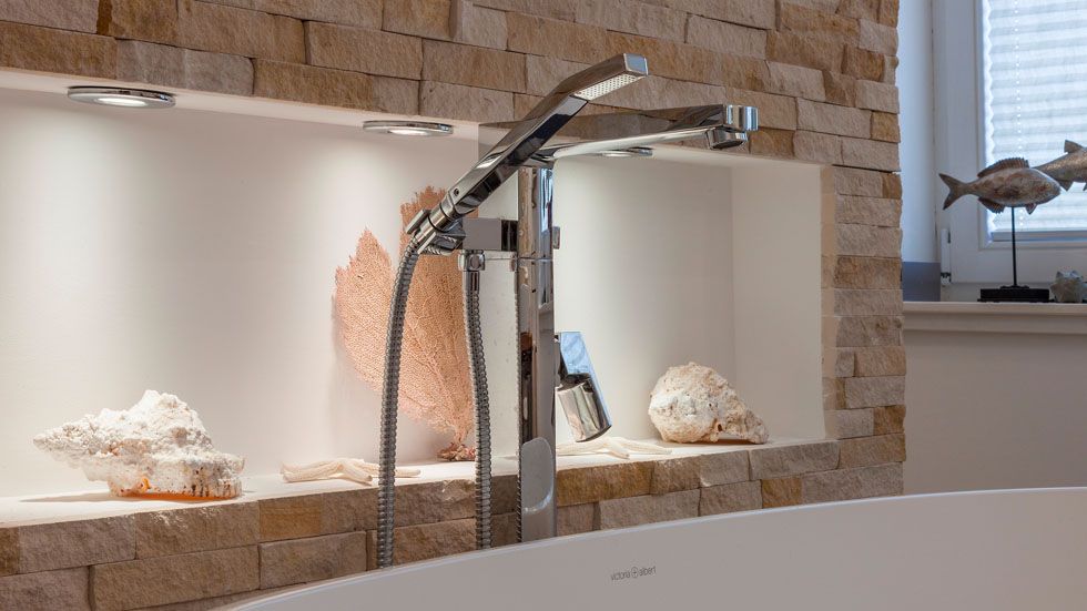 - freistehende Wanne mit extravaganter Wannenarmatur